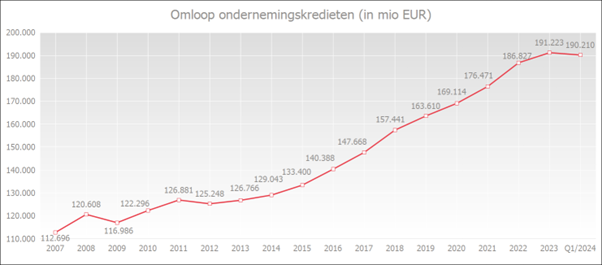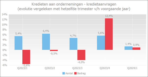 This gradual recovery is also reflected in credit demand. In the first quarter of 2024, entrepreneurs applied for 1.4% more credit than in the same period last year. In amount, however, the increase was still very limited (+0.9%).