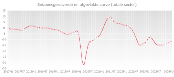 Business confidence has gradually started to recover since December 2023. The curve below reflects the underlying business trend. For instance, an increase in the curve reflects the reinforcement of business confidence.