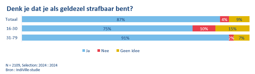 Looking at the survey figures, 10% of Belgian young people think that acting as a money mule is not punishable and 15% are in the dark about this. For the total Belgian population, these percentages are 4% and 9% respectively.