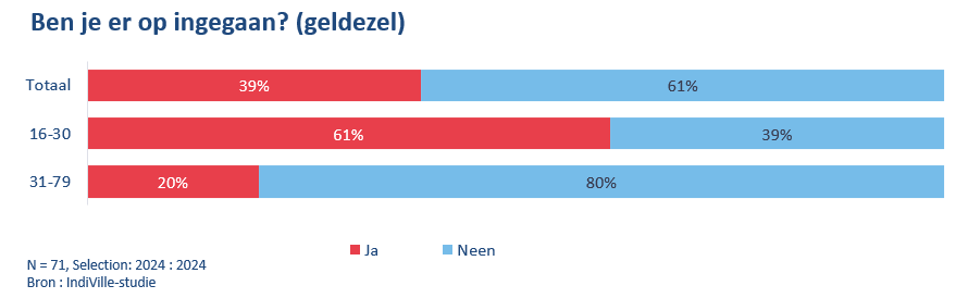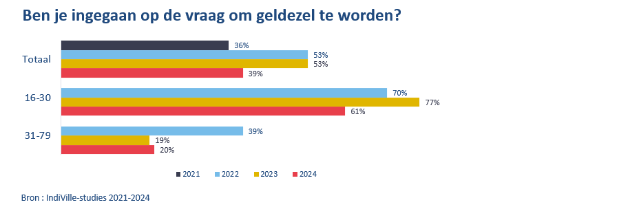 According to the survey, 3% of Belgians would have already been asked to become a money mule. 39% of those who were asked accepted the offer. Among 16-30-year-olds, 61% accepted.