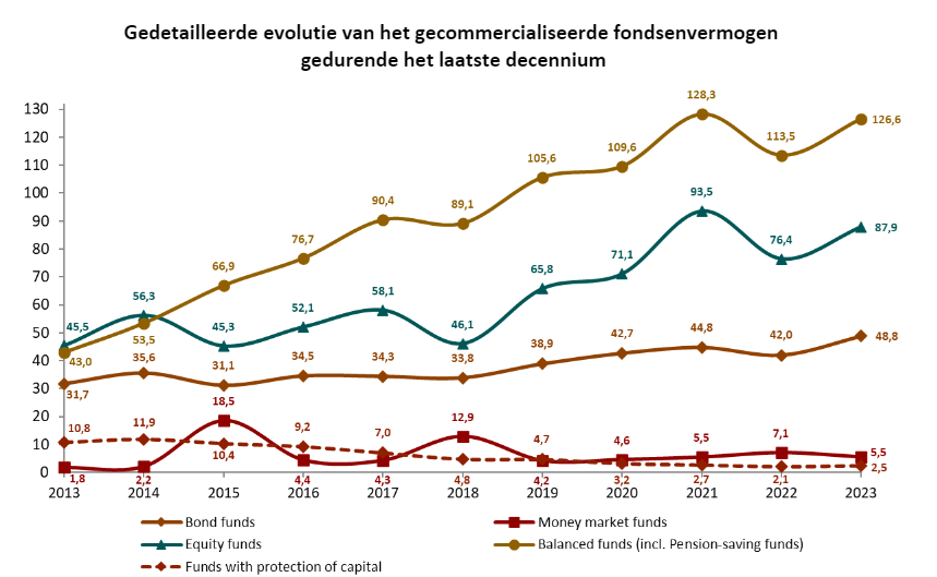 The strong growth of the Belgian funds market in 2023 is therefore due to the rebounding equity and bond markets. This allowed all asset classes to post positive results for the year as a whole.