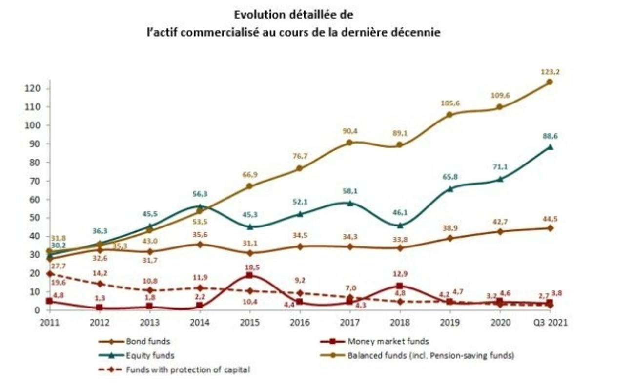En particulier dans un environnement de taux d'intérêt ultra-bas et d'inflation croissante, il peut être bénéfique d'utiliser d'autres actifs financiers, en plus des dépôts d'épargne, qui ont des rendements moyens plus élevés. La demande persistante de fonds observée au troisième trimestre 2021 suggère que les investisseurs restent confiants dans les perspectives de rendement potentiel offertes par les fonds.