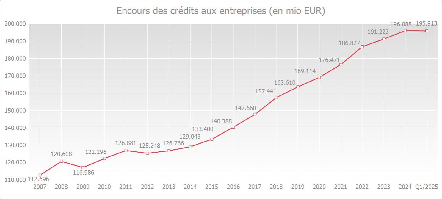 Au premier trimestre de 2025, les demandes de crédits des entreprises ont diminué de 8,2% par rapport à la même période de 2024. Le nombre de crédits accordés n'a augmenté que de 1,2 %. Les crédits octroyés aux entreprises se sont donc stabilisés au premier trimestre de 2025.