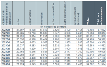 L’année 2024 retrouve une tendance positive avec 3 trimestres consécutifs en hausse pour la production des nouveaux crédits hypothécaires. La baisse des taux a été un signal positif pour les consommateurs.