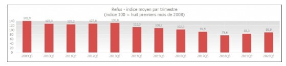 Le secteur financier est plus que jamais déterminé à soutenir l'économie, comme en témoigne, entre autres, le faible degré de refus. Ce degré de refus a légèrement augmenté par rapport aux troisièmes trimestres des deux années précédentes, mais il reste à un niveau historiquement faible. Comte tenu de la situation sanitaire et économique difficile, qui a sans aucun doute un impact négatif sur la qualité de très nombreuses demandes de crédit, il est intéressant de noter que le degré de refus n'augmente plus.