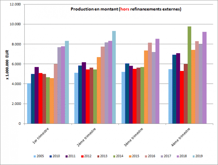 Au deuxième trimestre 2019, environ 70.000 nouveaux crédits ont été octroyés pour un montant total de quelque 9,3 milliards EUR – hors refinancements externes.