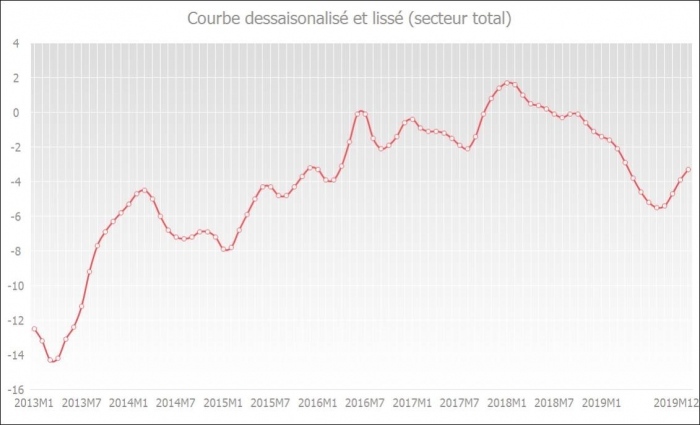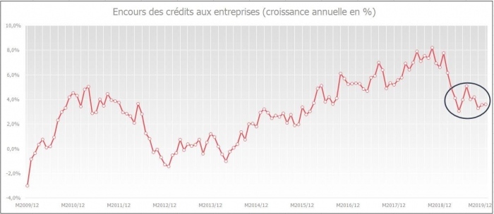 Sur une base annuelle (en comparant décembre 2018 et décembre 2019), l'encours a augmenté de 3,6 %. En septembre 2019, la croissance annuelle était encore de 4,2 %.