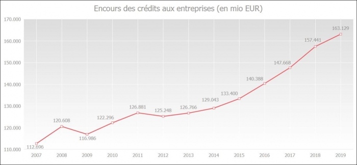 L’encours des crédits aux entreprises a atteint fin décembre 2019 un nouveau sommet, précisément de 163,1 milliards d’euros.