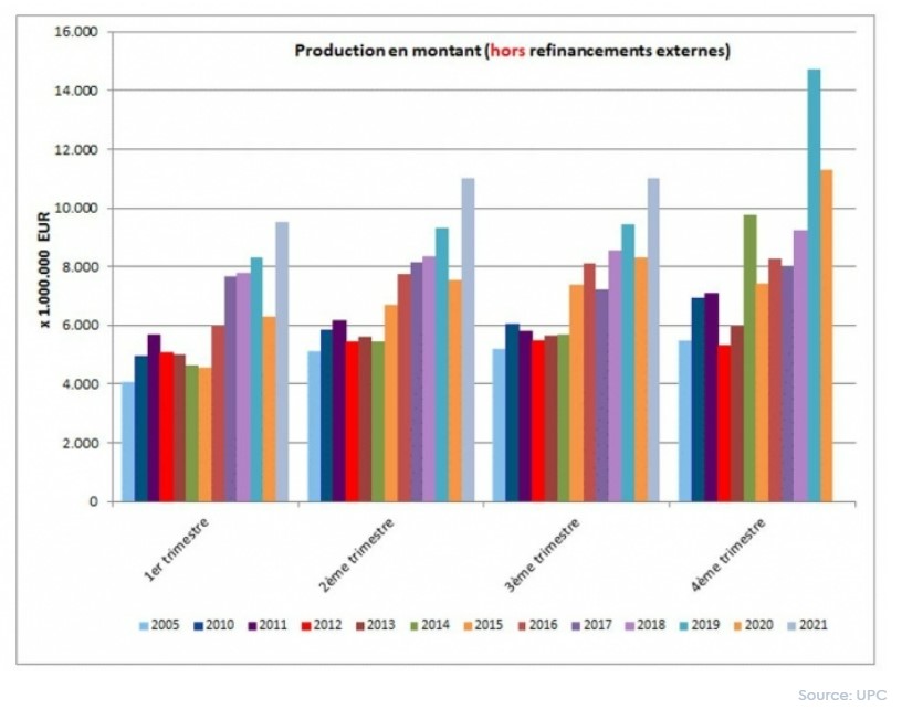 Il ne faut toutefois pas oublier que le troisième trimestre de 2020 a encore été un trimestre relativement « faible » en termes de crédits octroyés en raison de la crise du coronavirus et du confinement imposé au cours du deuxième trimestre.