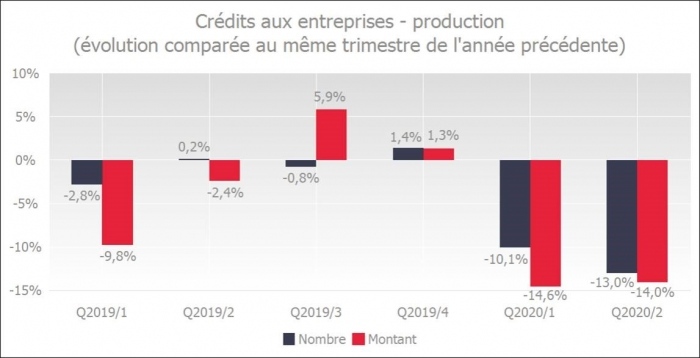 La crise du coronavirus a clairement ébranlé la confiance des entreprises. Compte tenu de la période d'incertitude économique, les entreprises investissent moins. Les chiffres montrent ainsi qu'au deuxième trimestre 2020, le nombre de demandes de crédits de la part des entreprises a été nettement inférieur à celui de la même période de 2019. Par rapport au même trimestre de l'an dernier, le montant demandé a diminué de 10,3 %.