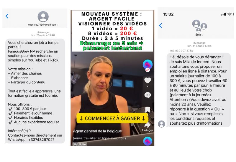 Des criminels se font passer pour des recruteurs ou des agences d’intérim et contactent directement les victimes via WhatsApp, Telegram, LinkedIn ou d’autres réseaux sociaux. Ils proposent des emplois à temps partiel ou en freelance qui permettraient de « gagner rapidement de l’argent » : effectuer des tâches simples, liker des publications ou réaliser de petits virements.