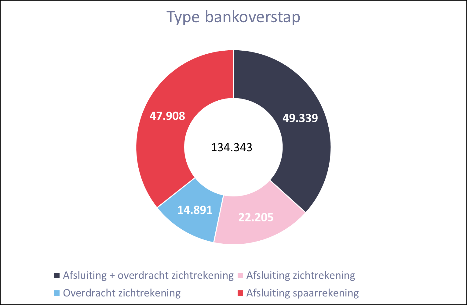 Sinds de lancering eind 2020 van de bankoverstapdienst voor spaarrekeningen, maken veel klanten hier ook gebruik van. In 2024 kozen 47.908 klanten voor een bankoverstap met afsluiting van hun spaarrekening.