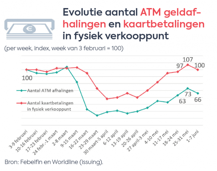 Febelfin roept alvast op om zo veel mogelijk digitaal (via de kaart en de smartphone) te blijven betalen, ook nu de meeste handelaars en verkooppunten opnieuw de deuren hebben geopend.