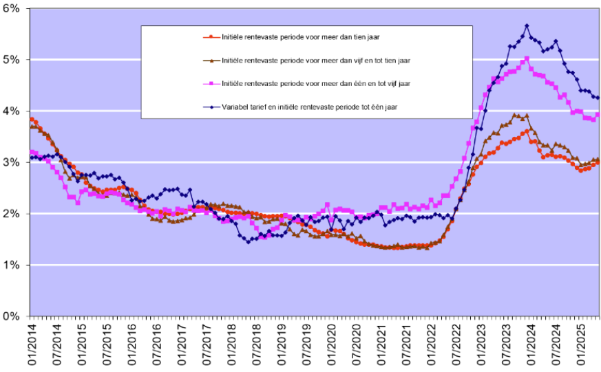 Alle statistieken van het hypothecair krediet (2000 – 2025S2), opgesplitst naar kredietdoel en type rentevoet, zijn op deze link beschikbaar.