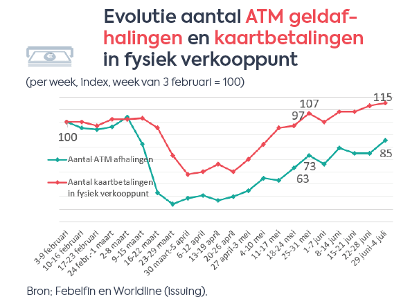 Febelfin roept alvast op om zo veel mogelijk digitaal (via de kaart en de smartphone) te blijven betalen.