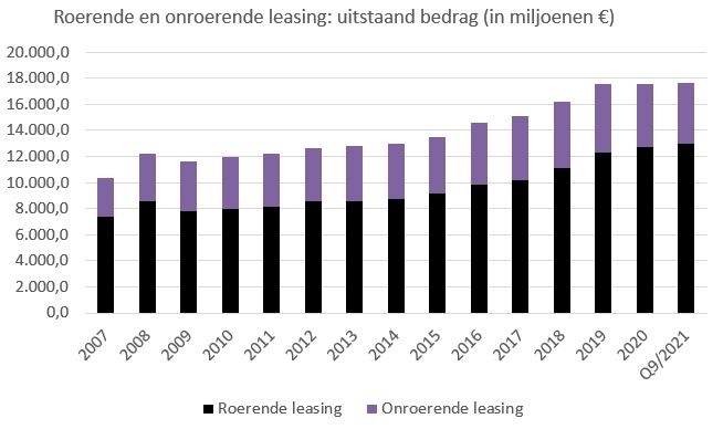 Eind september 2021 bedroeg het totaal uitstaand volume aan leasingcontracten 17,6 miljard euro.