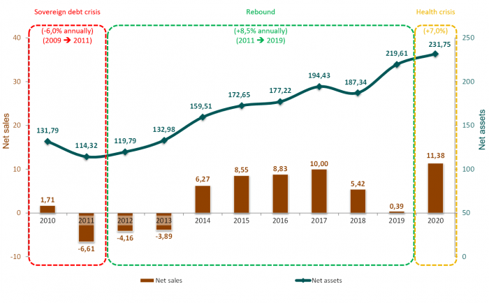 De Belgische fondsensector werd, op vlak van de onderliggende activa in de fondsen, sterk getroffen door de gevolgen van de Covid-19 pandemie tijdens het eerste kwartaal van 2020 maar kende gedurende de daaropvolgende kwartalen een continu herstel van het netto actief.